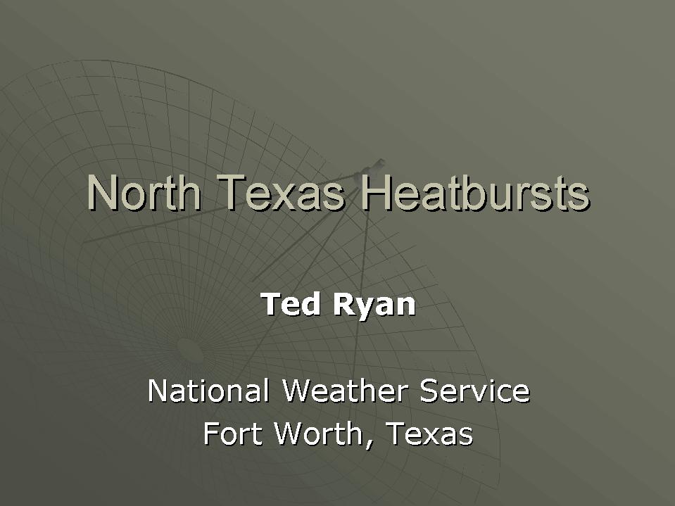 Special thanks to Ted Ryan, National Weather Service, Fort Worth, TX.